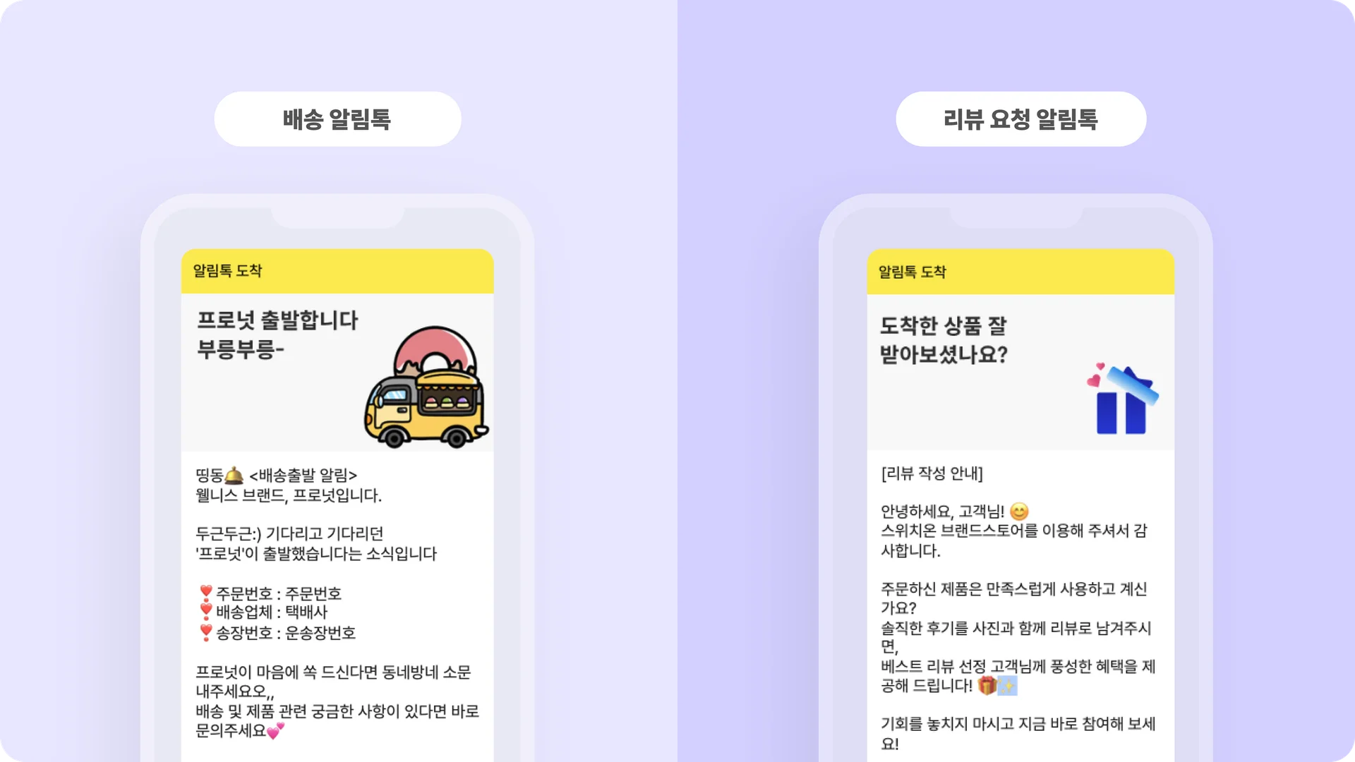 채널: 카카오톡 또는 문자 메시지